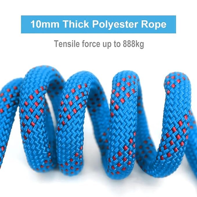 The length of the ropes: 49FT. Load-bearing of the rope reach 888kg (1958lb), safe enough to do any outdoor activity. The Static climbing rope features white with black color, simple and stylish, portable light weight and high performance characteristics, Purpose-built to balance both durability and great handling, our ropes are not too stiff and not too soft, can be knotted easily.Eliable design for mountaineering, rock climbing, rappelling, rescue and other outdoor activities