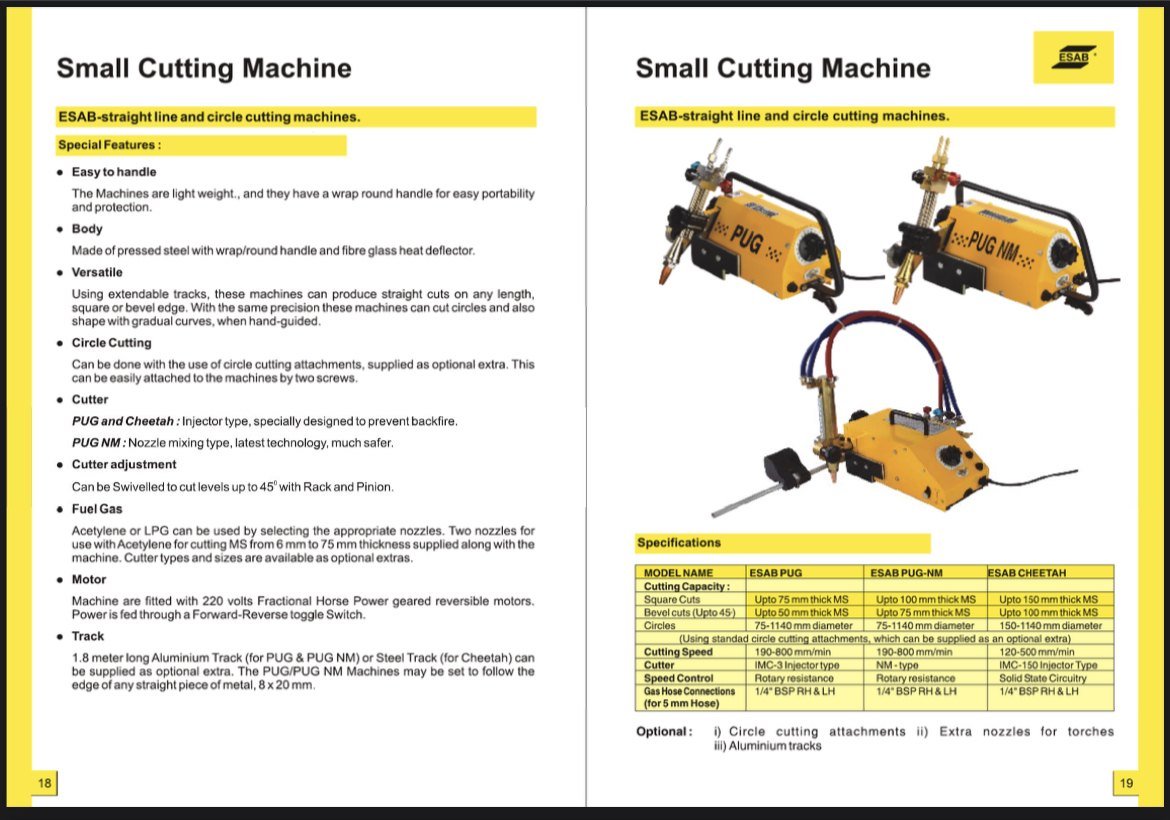 Box Includes: ESAB NM Semi-Automatic Pug Cutting Machine, One Seema I.M.C 3 Gas Cutting Blowpipe