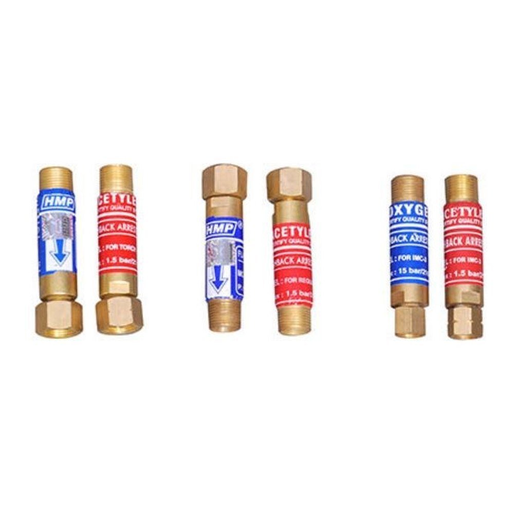 - This is a Flash Back Arrestor used for safety and back fire. It is made up of brass material. The package consists of 1 set of 2 Pcs. It is used for safety purpose.