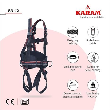 KARAM SAFETY BELT Full Body Work Positioning Adjustable Safety Harness for Fall Arrest & Work Positioning Type of Attachments Construction Harness & Fall Protection PN42 Get Best Offer Price 3450/.