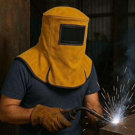 - PREMIUM PROTECTION: Full coverage welding hood with head, neck, and shoulder protection made from durable split leather for maximum safety during welding operations