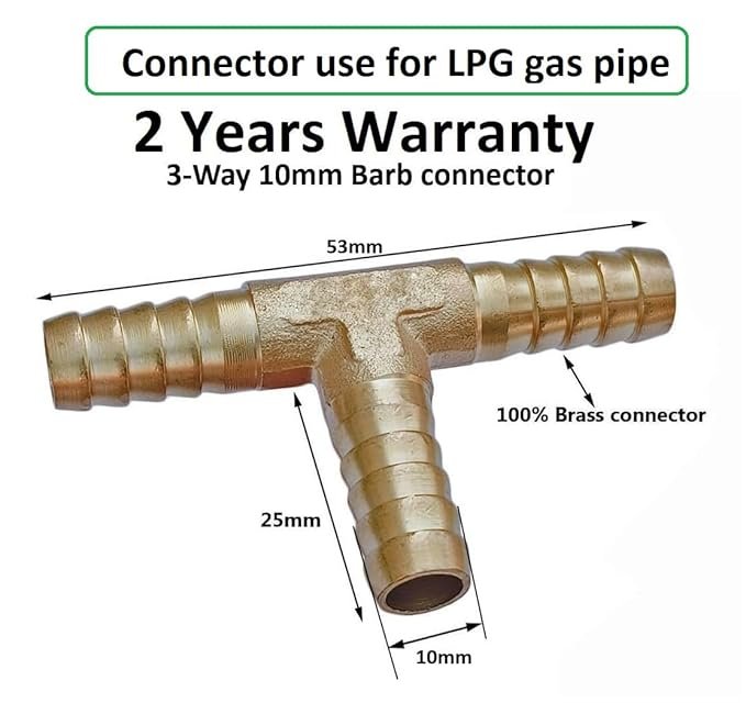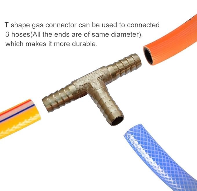 UNIVERSAL COMPATIBILITY: Three way brass barb connector use for Pneumatic/water Fuel/Air/ pressure flexible pipe, DURABLE CONSTRUCTION: Made from high-quality brass material ensuring long-lasting performance and corrosion resistance