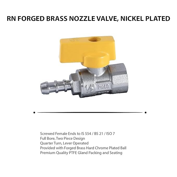 RN Forged Nickel Plated Brass Nozzle Valve 1/2 Inch Female Connection Suitable for Liquid Gas15mm RNNV140010 Price 260/.
