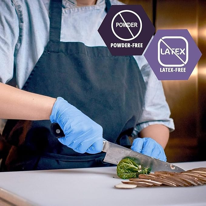 Premium gloves suitable for sensitive hands or foods. Avoid potential allergies and discomfort with our gloves. [RELIABLE QUALITY MATERIALl]: Nitrile gloves are durable, elastic and Puncture Resistant. Perfect for daily use.